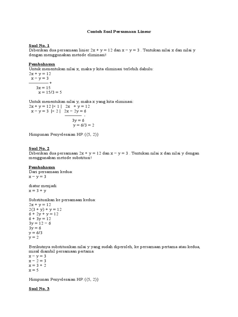 Untuk contoh soal lainnya bisa dilihat di link berikut. Walaupun terdapat variabel x pada ruas kiri dan ruas kanan, namun dianggap satu variabel yaitu :x. 41 contoh soal persamaan linear satu variabel pngsifat operasi hitung dan penerapan. Apakah ada persamaan linier satu variabel? Termasuk persamaan linear satu variabel.