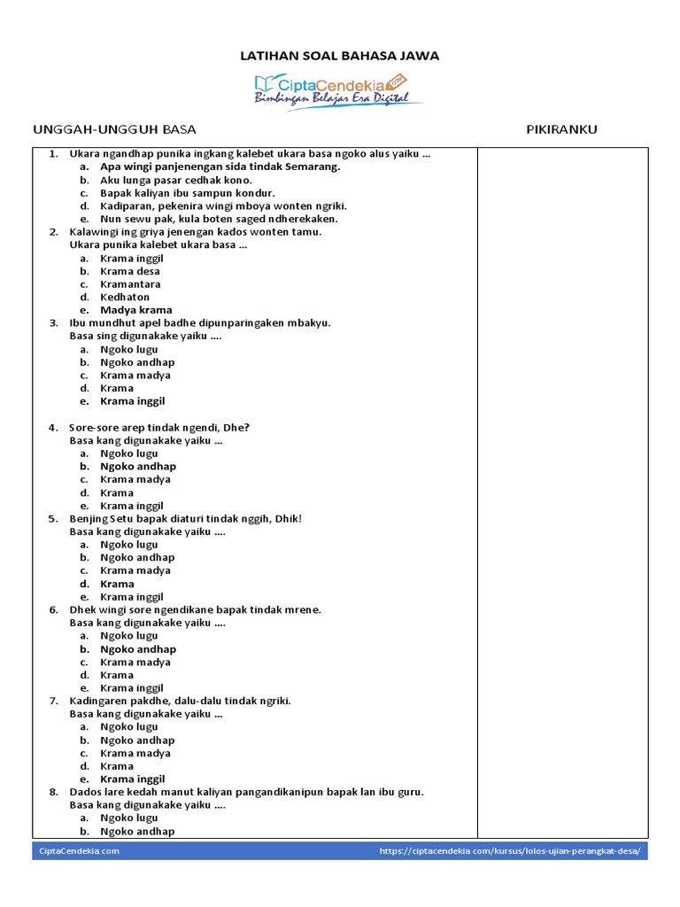 Dapatkan penjelasan bukan hanya jawaban. Wibawa wiyata basa jawa bahan ajar bahasa. Buku bahasa jawa kirtya basa kelas 9 kurikulum 2013 edisi revisi. Kunci jawaban buku sastri basa kelas 10 hal 21 edi. 100 contoh soal pg bahasa indonesia kelas 10 sem 2 sma smk dan.